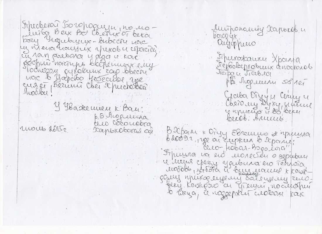 Письмо от прихожанки храма Первоверховных Апостолов Петра и Павла р.б Людмилы Опубликовано 3 ноября, 2015 - elena в Letters