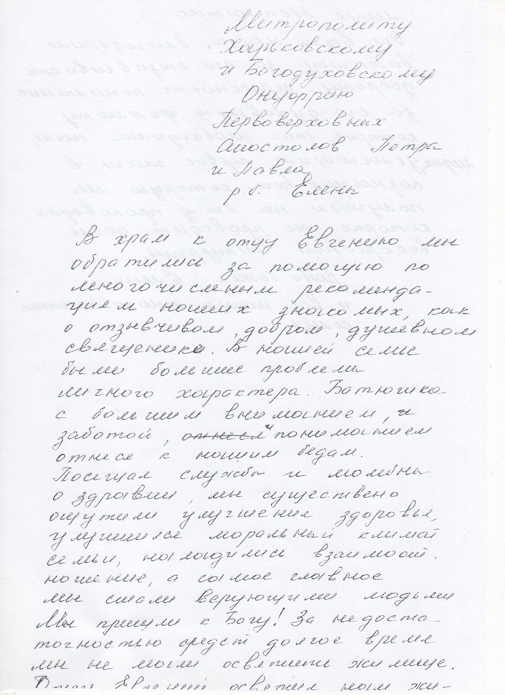 Письмо от прихожанки храма Первоверховных Апостолов Петра И Павла Елены Опубликовано 10 ноября, 2015 - elena в Letters