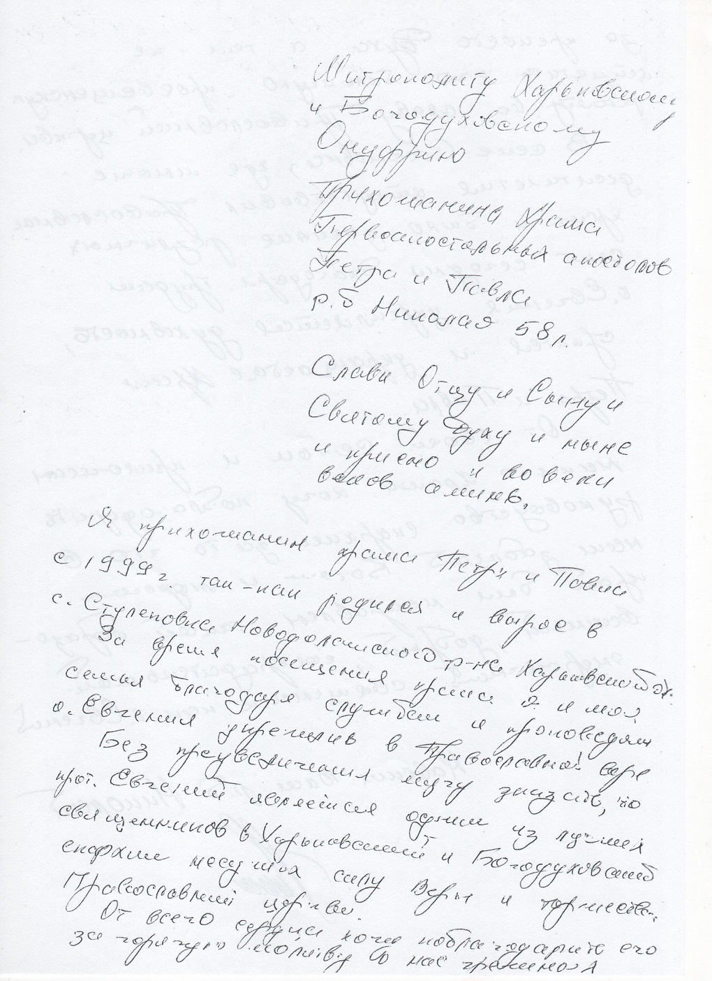 Письмо от прихожанина храма Первоверховных Апостолов Петра и Павла Николая Опубликовано 10 ноября, 2015 - elena в Letters