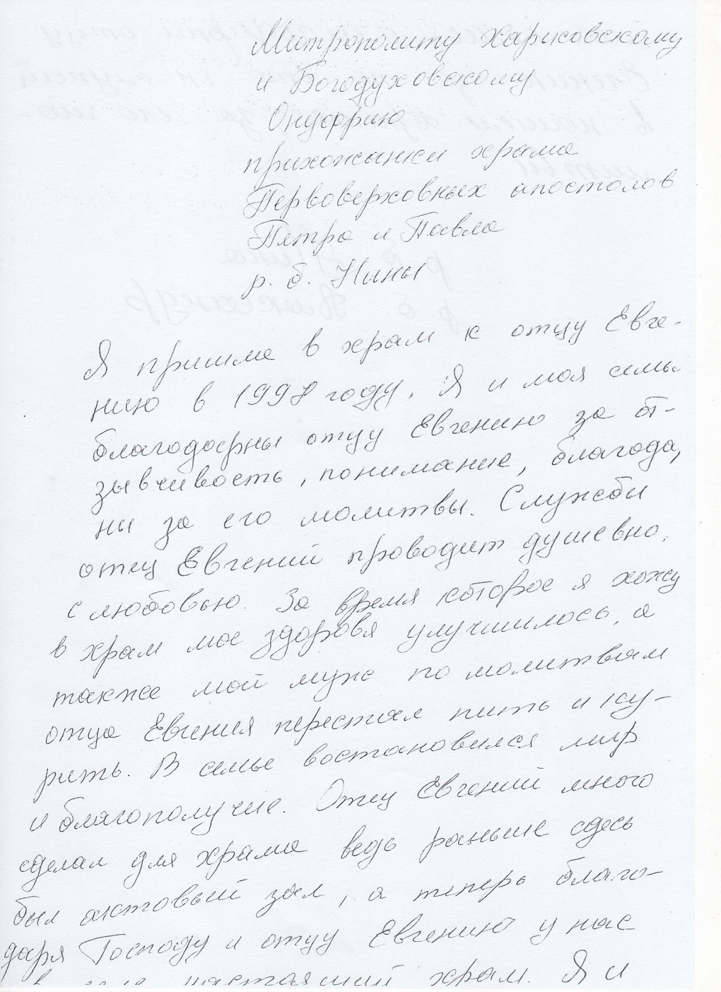 Нет комментариев к “Письмо от прихожанки храма Первоверховных Апостолов Петра и Павла Нины”