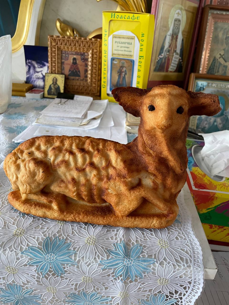 Таких ягнят выпекали в нашем храме,ставили их в вертепе и по окончанию всех праздников раздавали детям,которые были на службе.